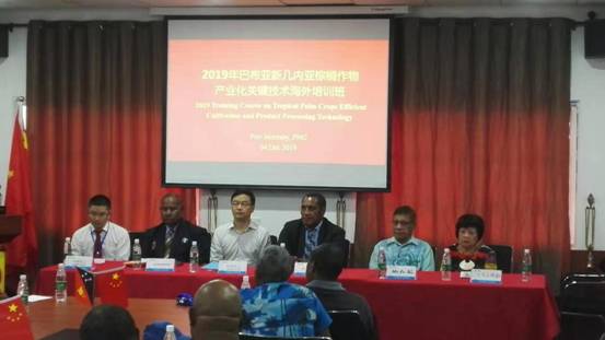 2019年12月4日,由中国农业农村部主办,中国热带农业科学院和海南热作高科技研究院股份公司承办的“2019年巴布亚新几内亚棕榈作物产业化关键技术培训班”在巴新首都莫尔斯比港举办开幕式。中国驻巴新使馆经济商务参赞刘林林、海湾省省长克里斯托弗·哈维塔(Christopher Haiveta)、农业和畜牧业部秘书长丹尼尔·孔布克(Daniel Kombuk)、马拉佩总理顾问阿诺·帕拉(Ano Pala)、中巴新联合会名誉主席刘陈玉梅女爵士等出席活动并致辞。